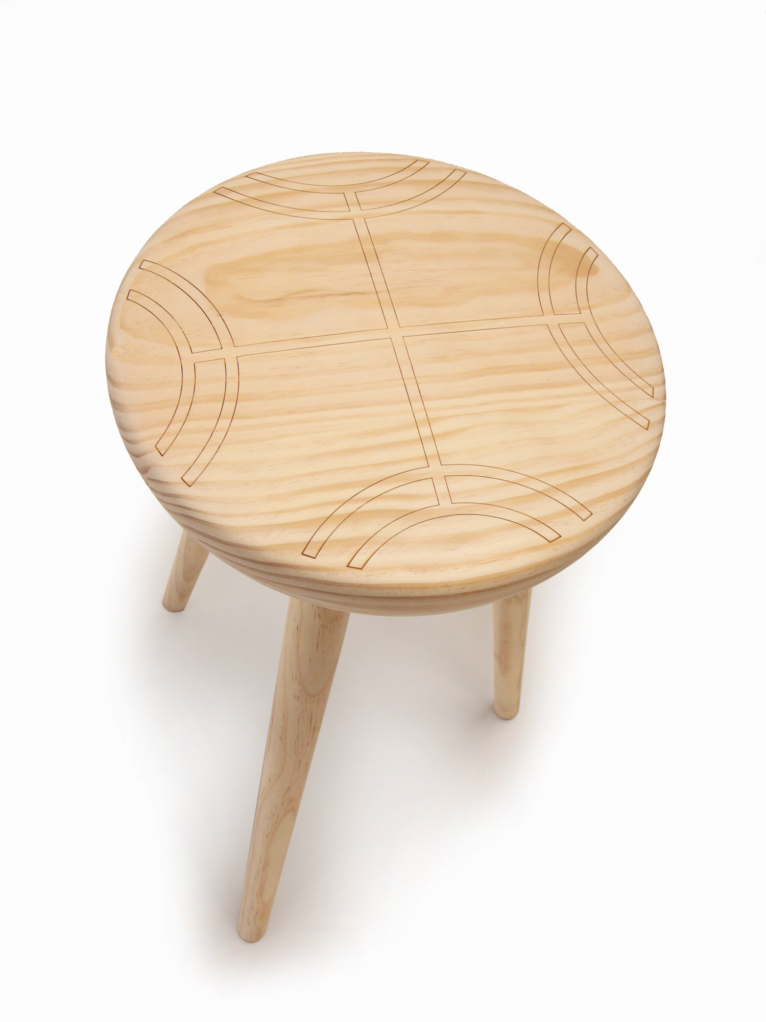 Este diseño nace de la investigación del kultrun como instrumento ceremonial y desde ahí un análisis más profundo de la iconografía que se dibuja en su interior. . Esta grafica se llama Meli Witran Mapu y simboliza la tierra y los 4 puntos cardinales. Desde ahí se trabaja una abstracción de la forma a nivel gráfico para llegar a algo más moderno sin necesidad de que se pierda la idea inicial. Este elemento grafico que se quema con laser sobre el Pino se transforma en una parte distintiva y muy pregnante del diseño y además logra traer parte de esa cultura a un producto de diseño para un uso cotidiano. We studied the Kultrun, a musical instrument used in religious ceremonies, and focused on the iconography stamped on it. These graphic figures are called Meli Witran Mapu and symbolize the earth and the four cardinal points. We created an abstract graphic design to represent this icon to achieve a more modern design without losing the original idea. When the graphic design is burnt onto the pine stool with a laser, it immediately becomes a persistent and distinctive part of the stool, uniting culture to a product designed for everyday use.