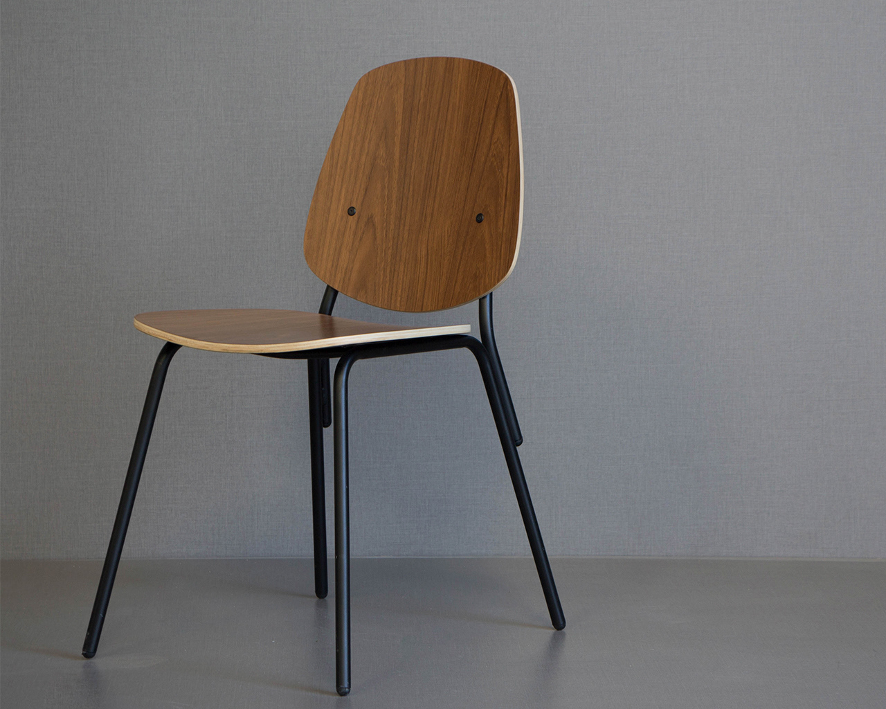 La silla Aula es un diseño que buscar rescatar el lenguaje de la silla escolar como también los procesos productivos involucrados en ella, para componer una nueva variante de uso residencial, logrando en esta interpretación un diseño ligero de carácter armonioso y orgánico que integra en su forma la simpleza y esbeltez del metal curvado con la nobleza y calidez visual de la madera laminada.