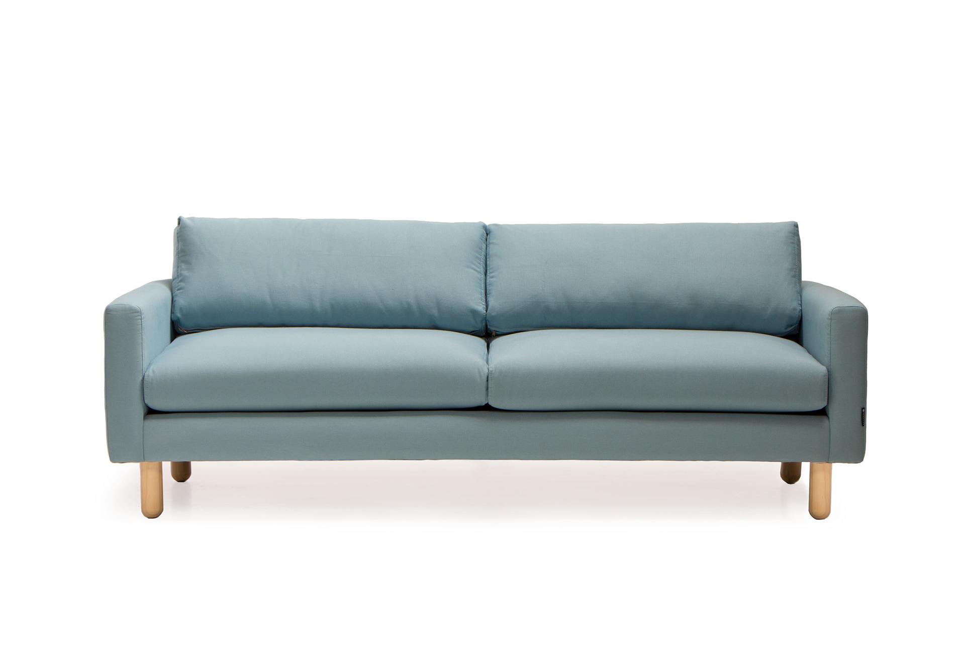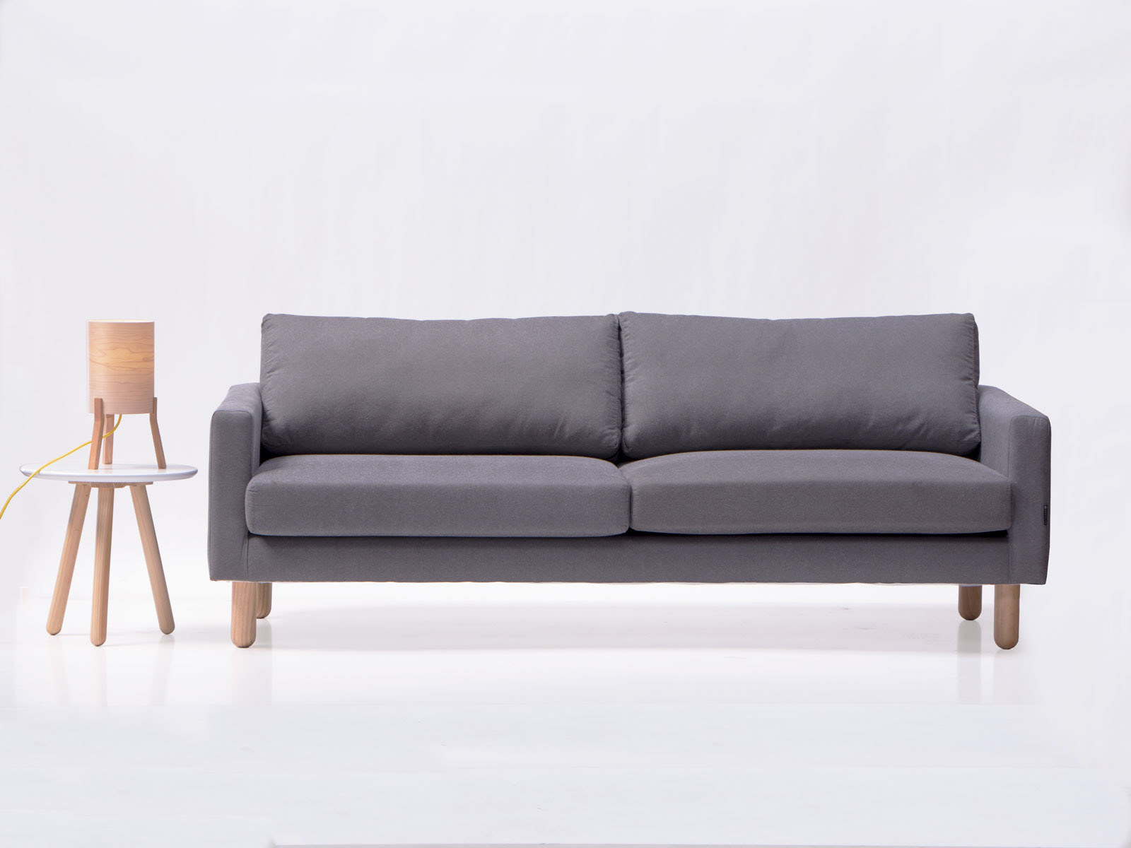 La idea detrás del sofá Canelo es ante todo un sofá cómodo y con una estética moderna y simple. Desde ahí se crea un volumen que recoge la estructura más básica y sencilla de un sofá y la integra en cojines con forma más mullida expresando y comunicado al usuario la sensación de comodidad. Las patas que lo separan del suelo son esféricas en su extremo expresando cierto rasgo de ingenuidad al conjunto. El resultado final remata con una tela de algodón fresca al tacto y juvenil en su expresión textil. The idea behind the Canelo Sofa is that, above all, it should be comfortable with a modern and simple aesthetic. Based on this idea a volume is generated that picks up the most basic and simple structure of a sofa. The cushions give it a softer feel that communicates a feeling of comfort to the user. The legs that separate it from the floor have spherical extremes and express the ingenuity of this piece. The final touch is a cotton cover that is fresh to the touch and has a juvenile expression.